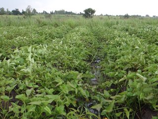 Poplars planted to lower the ground water table and reduce salinity where irrigation drainage systems have broken down; lucerne cultivated between the tree lines.