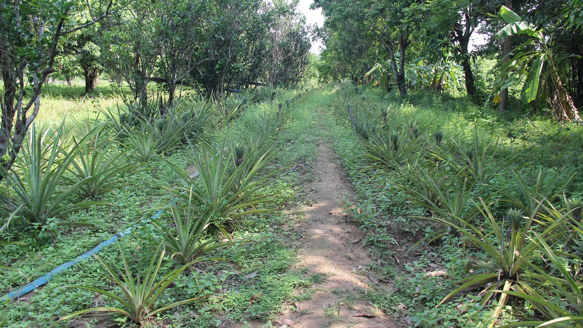 Agroforestry: intercropping of pineapple between orange and mango trees