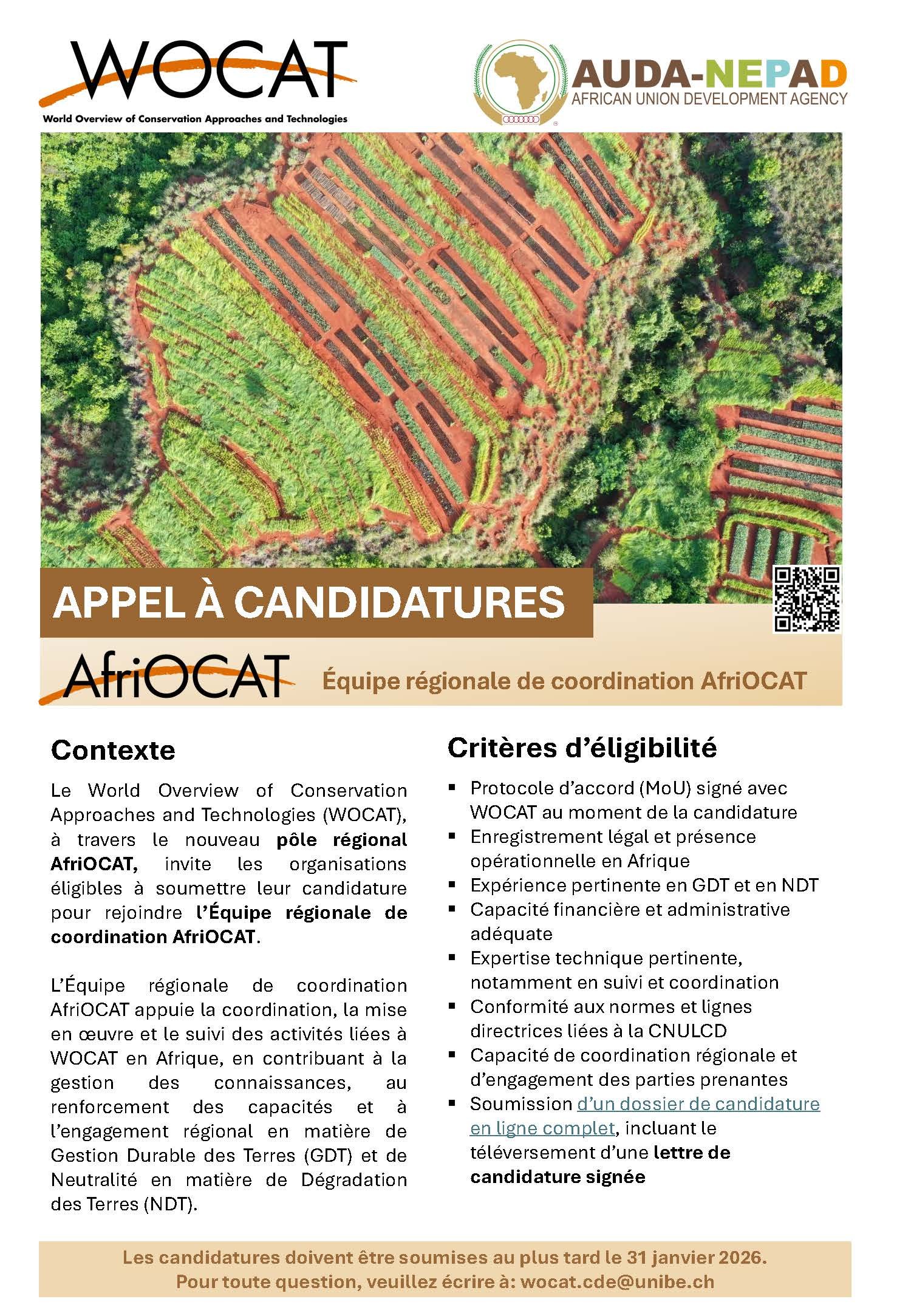 Launched in November 2025, AfriOCAT is the African Regional Cluster of the World Overview of Conservation Approaches and Technologies (WOCAT), established in collaboration with AUDA-NEPAD. AfriOCAT strengthens sustainable land management (SLM) across the continent by connecting partners, sharing knowledge, and supporting action on the ground.