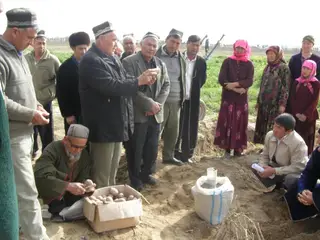 Farmer Field Schools (FFS) are held to fill farmer's gaps in knowledge on the use of sustainable agricultural technologies, efficient irrigation water use and prevention of land degradation using trials tailored to local conditions.