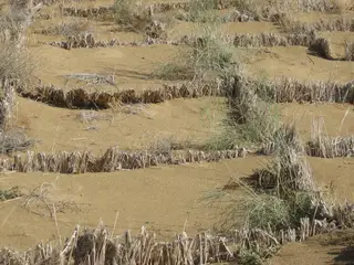 The stabilization of shifting sands by installing means of mechanical protection and planting shrubs around settlements in the Central Karakum