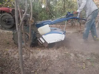 Shallow tillage involves disturbing the upper layer of soil without deep ploughing. It aims to provide a good seedbed, incorporate manure, control weeds, and enhance water infiltration while minimizing soil erosion and compaction. A machine tiller has recently replaced animal traction for this purpose.