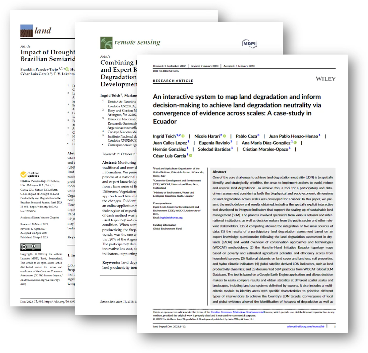 Ecuador is preparing its national report for UNCCD (PRAIS 4 reporting), including SDG indicator 15.3.1, "Proportion of degraded land over total area”. WOCAT has supported the Ministry of Environment of Ecuador to improve its national estimations by integrating national data and expert knowledge and co-developing its national LDN DSS. The LDN DSS is currently being used to map not only hotspots of degradation but also false positives and negatives for PRAIS4 UNCCD reporting.