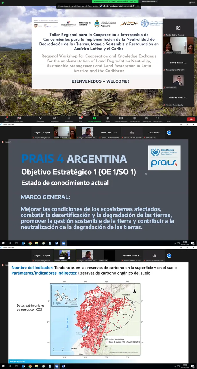 During the final workshop of the DS-SLM project in Ankara (April 2019), the countries emphasized the need to strengthen the exchange of knowledge and capacities, with the support of FAO and WOCAT to continue strengthening South-South cooperation on issues related to Land Degradation Neutrality (LDN), as well as innovative financial mechanisms. Likewise, the importance of South-South Cooperation for knowledge exchange to achieve LDN was emphasized by countries during the UNCCD COP15 in Abidjan.To move forward with a South-South initiative for knowledge exchange on best practices for SLM and land restoration, a series of workshops and consultations with countries are being organized to contribute to the establishment of knowledge exchange networks on Land Degradation Neutrality, Sustainable Management and Restoration.Given the current context, in which countries are preparing their national reports for UNCCD, which includes the estimation of indicator 15.3.1 of the Sustainable Development Goals (SDGs), "Proportion of degraded land over total area”, and given the technical difficulties to map land degradation, we organized a first instance of exchange on the strategies, difficulties and solutions found by countries to map land degradation in a realiable way. Argentina, Ecuador and Panama presented their strategies for PRAIS4 and participants from more than 10 countries of Latin America and the Caribbean exchanged knowledge to capitalize on lessons learned and good practices regarding the development of the PRAIS4 Report for the UNCCD.