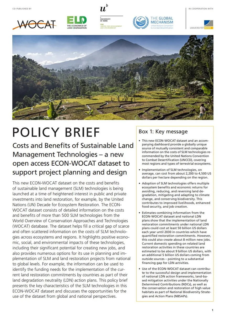 In order to support SLM/LDN project and programme design, the project produces a new open access ECON-WOCAT Dataset and Dashboard with a related methodological paper.