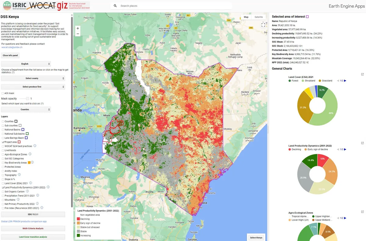 In October 2023, WOCAT and GIZ organized a successful training on Mapping Land Degradation in Kenya in order co develop tools, knowledge products and strengthen capacities to enhance national processes related to UNCCD and LDN, such as reporting and LDN target setting, as well as to support evidence-based processes such as land use planning and monitoring.