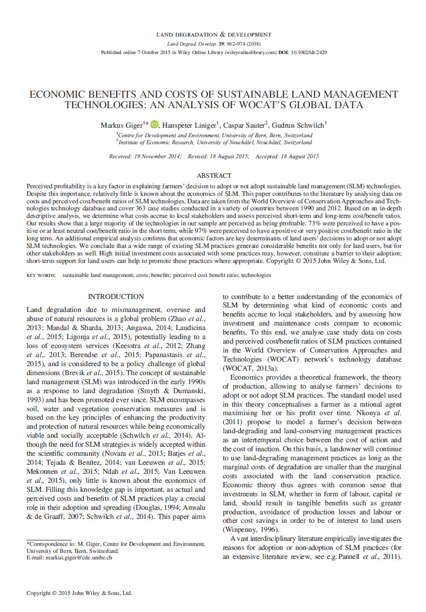 Economic Benefits and Costs of Sustainable Land Management Technologies: An Analysis of WOCAT’s Global Data