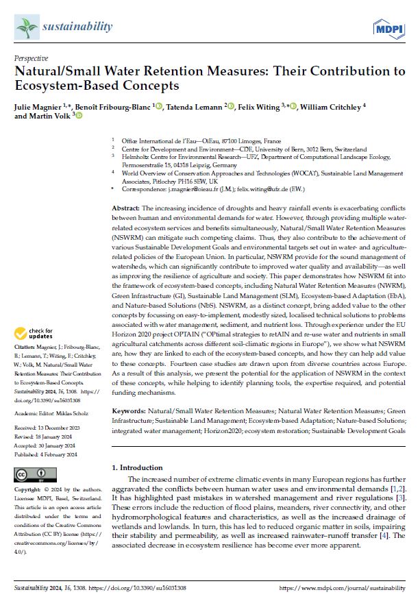 Natural/Small Water Retention Measures: Their Contribution to Ecosystem-Based Concepts
