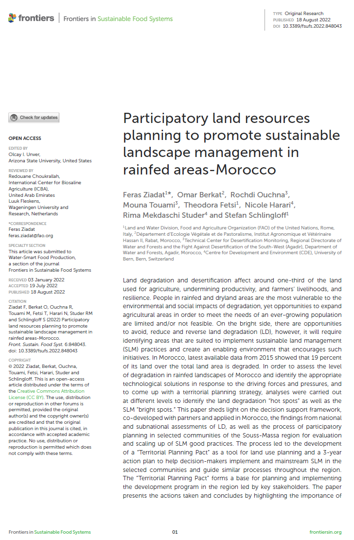 Participatory land resources planning to promote sustainable landscape management in rainfed areas-Morocco
