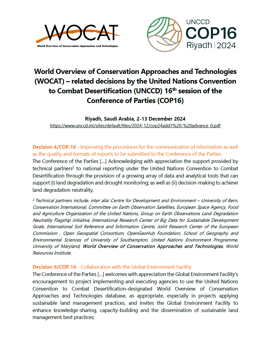 With our UNCCD-Designated Global Database on Sustainable Land Management Best Practices, WOCAT continues to lead efforts to document, share, and scale impactful solutions that support achieving Land Degradation Neutrality (LDN) and advancing the UN Sustainable Development Goals (SDGs).