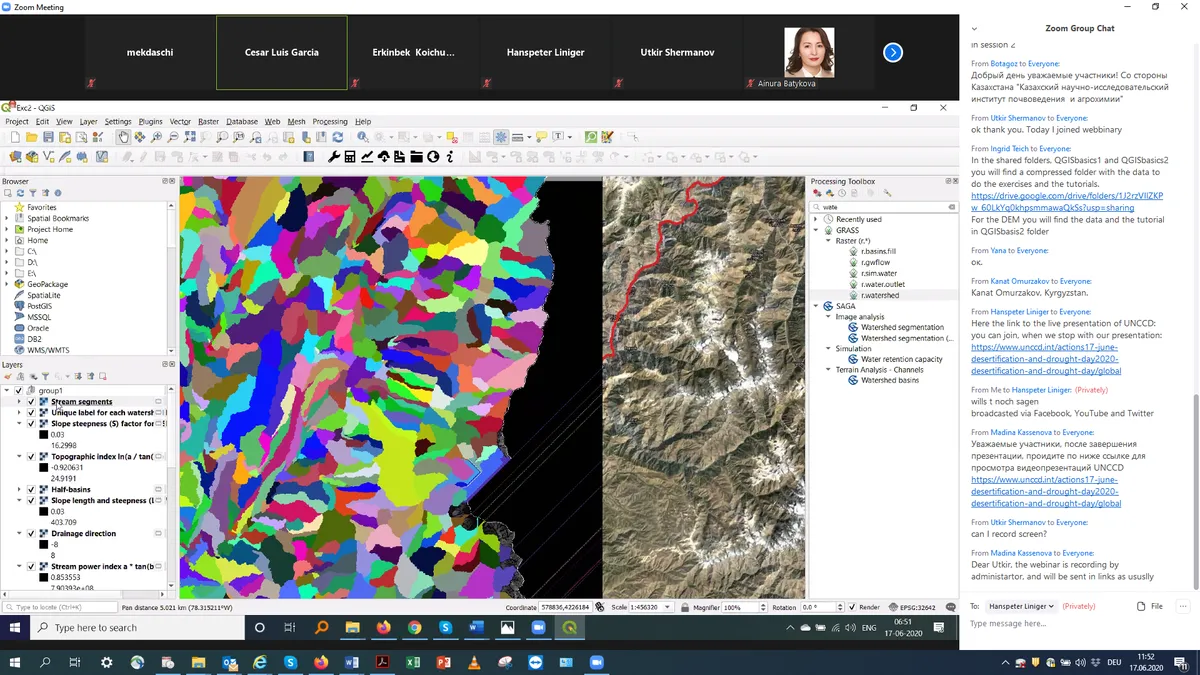 From June 15-19, 2020 an online training on QGIS and the WOCAT watershed tool for 70 participants from Central Asian countries took place. This is part of a series of trainings in the framework of the GEF/FAO CACILM II project organized by WOCAT and partners to support countries in mapping land degradation and SLM.