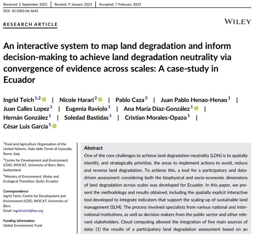 This paper presents a novel approach to address the challenge of achieving land degradation neutrality (LDN) in Ecuador. The methodology involves a participatory and data-driven assessment, integrating both biophysical and socio-economic dimensions of land degradation. This tool not only identifies degradation hotspots but also ensures ownership and support for Ecuador's LDN goals, offering a replicable model for other countries and regions.