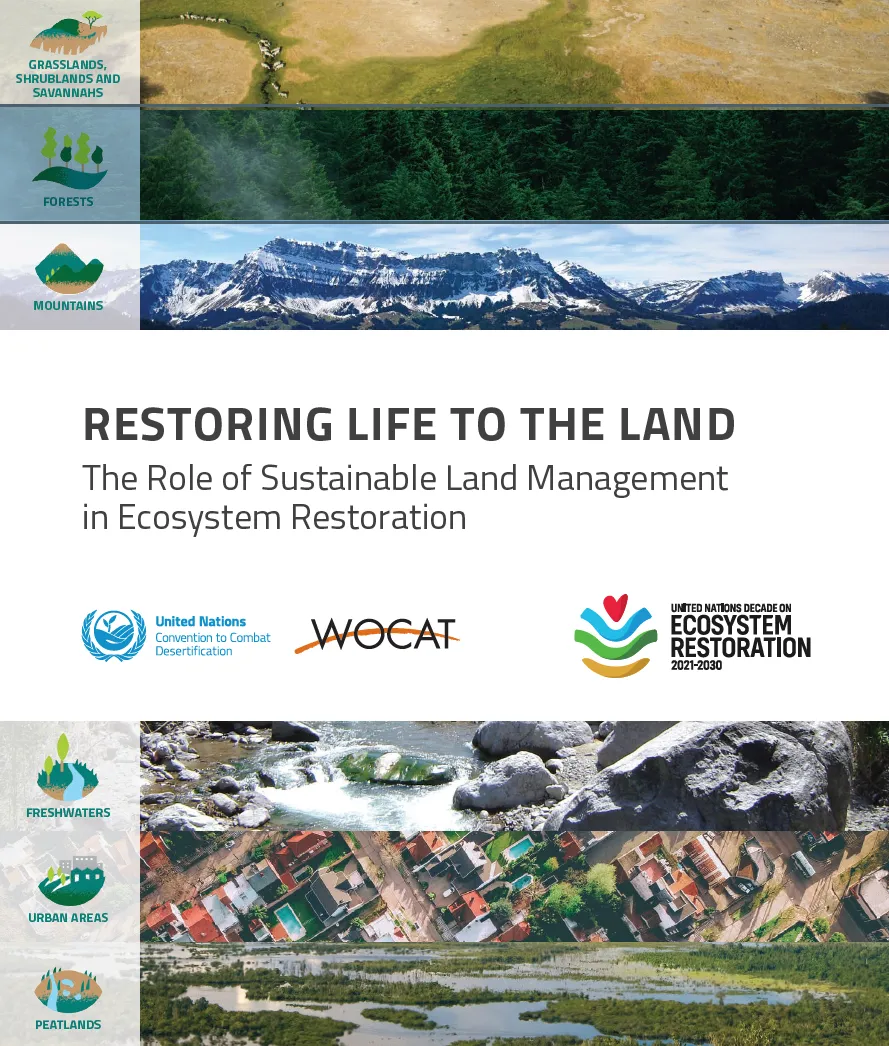 The new publication "Restoring Life to the Land – The Role of Sustainable Land Management in Ecosystem Restoration" prepared jointly by UNCCD Secretariat and WOCAT in the context of the UN Decade on Ecosystem Restoration illustrates how SLM experience feeds directly into ecosystem restoration efforts, as well as ecosystem maintenance. It showcases field-tested good practices under each of the eight ecosystems from all over the world.