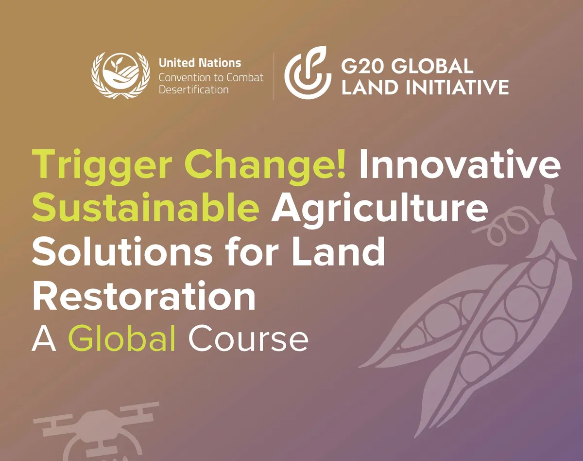 The G20 Global Land Initiative developed a new course: Trigger Change! Innovative Sustainable Agriculture Solutions for Land Restoration: A Resource for University Professors. Released in April 2024, this new course targets university students and training institution participants worldwide enrolled in agriculture and related programs. The course is structured into five modules, spanning 48 hours of in-class instruction. Each module delves into innovations in sustainable agriculture for land restoration, providing a comprehensive learning experience for students.