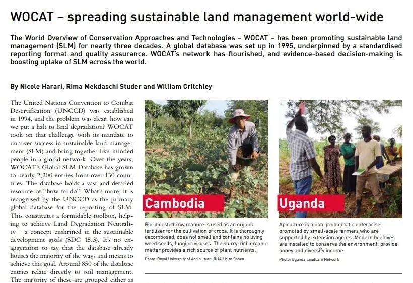 The International Journal for Rural Development RURAL21 has published an article by Nicole Harari, Rima Mekdaschi Studer and William Critchley: "WOCAT – spreading sustainable land management world-wide". The authors highlight the collaborative efforts of WOCAT with the UNCCD and partners to «uncover success in sustainable land management».