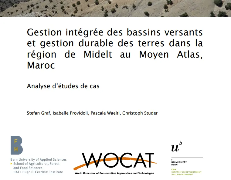 The new publication "Gestion intégrée des bassins versants et gestion durable des terres dans la région de Midelt au Moyen Atlas, Maroc" is a case study analysis on integrated watershed management and sustainable land management in the Midelt region in the Middle Atlas, Morocco. The book was prepared jointly by the Centre for Environment and Development (CDE) and the School of Agricultural, Forest and Food Sciences (HAFL).