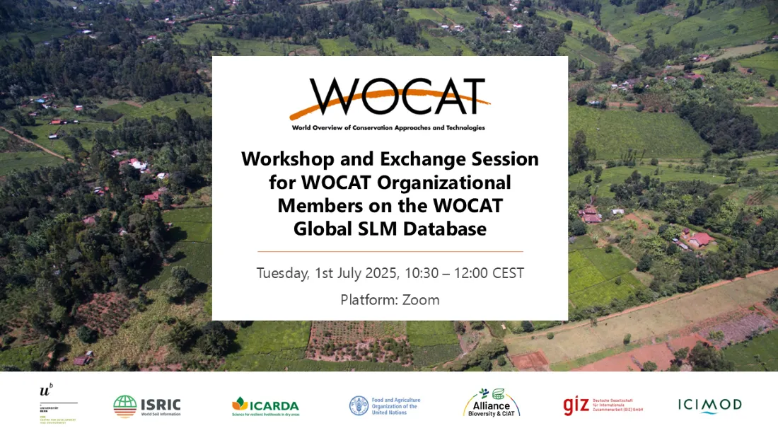 The WOCAT Secretariat organized an interactive session for WOCAT Organizational Members, focusing on the practical use of the WOCAT Global SLM Database. The session aimed to strengthen Organizational Members' capacity to utilize the Database and its contained knowledge on SLM practices.