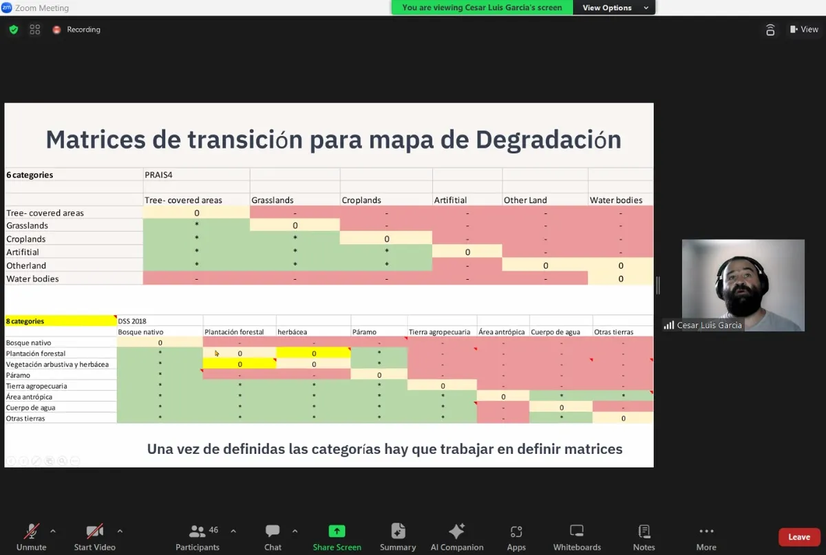 From Nov. 29th to Dec. 1st, a workshop on participatory definition of datasets and methodologies to estimate SDG 15.3.1 and map land degradation in the context PRAIS4 reporting to UNCCD took place in Colombia. Two Google Earth Engine apps were developed to support the process: one for comparing the Landproductivity maps and another one for comparing the Land cover transitions results with national information.