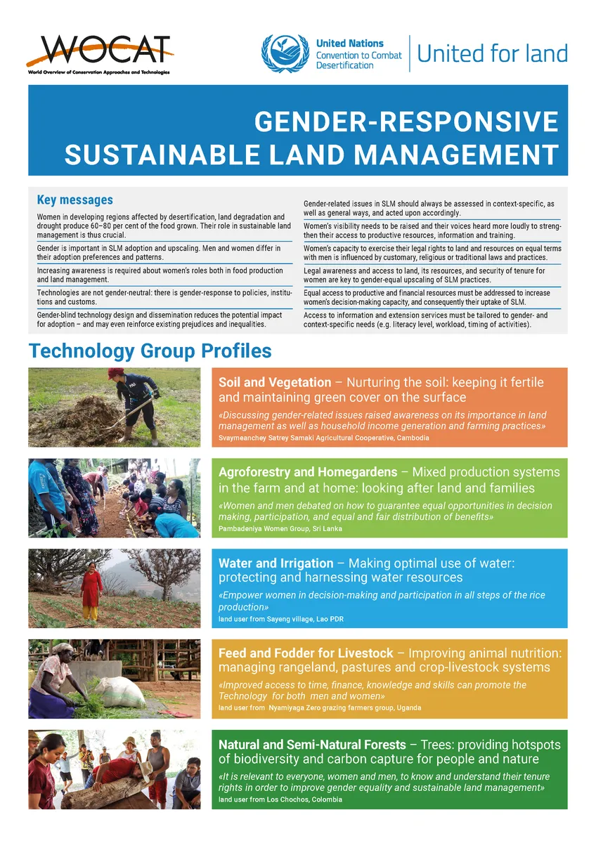 Gender equality is a key entry-point for SLM adoption, spread and upscaling. Therefore, WOCAT and UNCCD are working together to improve gender-responsiveness of SLM practices.